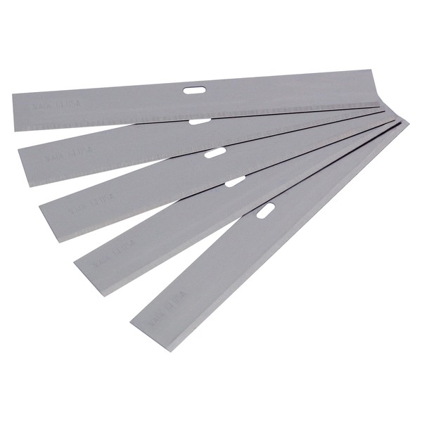 - Includes five 4" wide by 0.5 mm thick blades