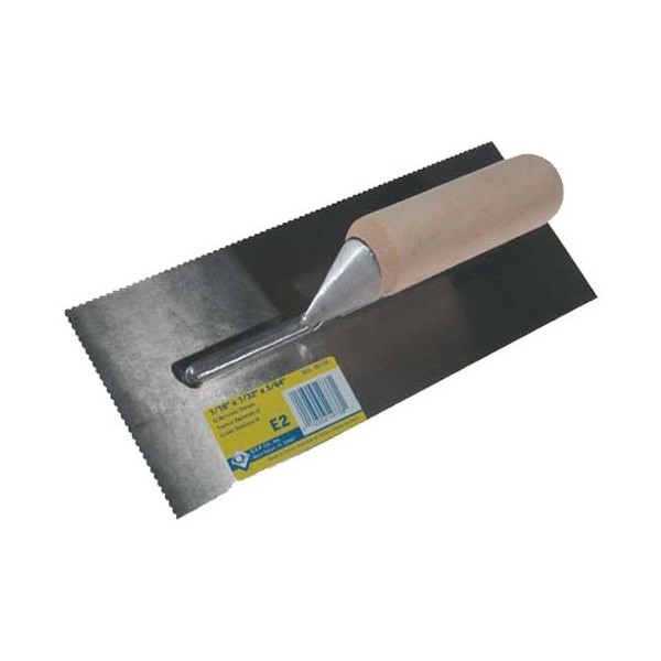 Quality trowel measuring 11 In. x 4.5 In. designed for the professional installer. Hardened and tempered steel blade, ground and polished for long lasting durability. Large wood handle for easy handling.