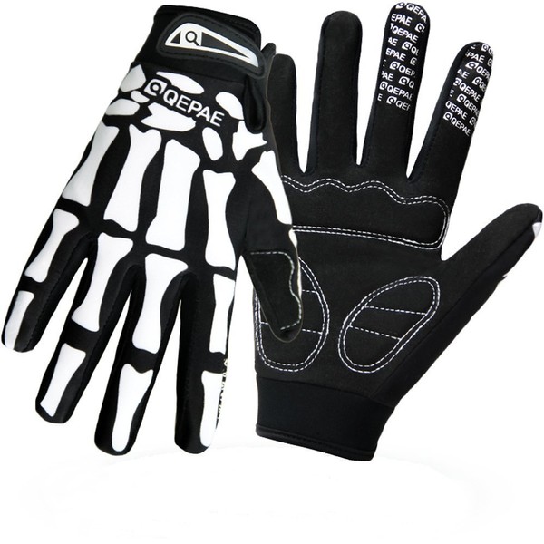 QEPAE Breathable Auto Racing Gloves Anti-Slip Full Finger Gloves for Biking Running Sporting Weightlifting Hunting Shooting Training, X-Large, Skeleton Pattern