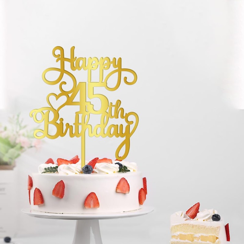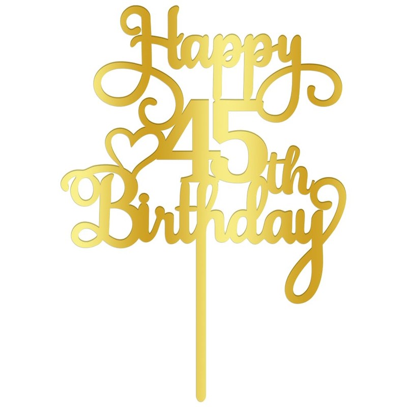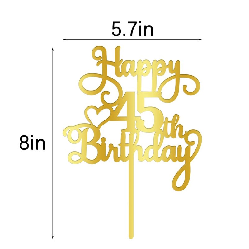 - El paquete incluye: recibirás una decoración de pastel de feliz cumpleaños 45, esta delicada decoración para tartas es el complemento perfecto para tu fiesta de cumpleaños 45 y añade alegría a tu fiesta temática. También se puede utilizar como accesorio para fotomatón.