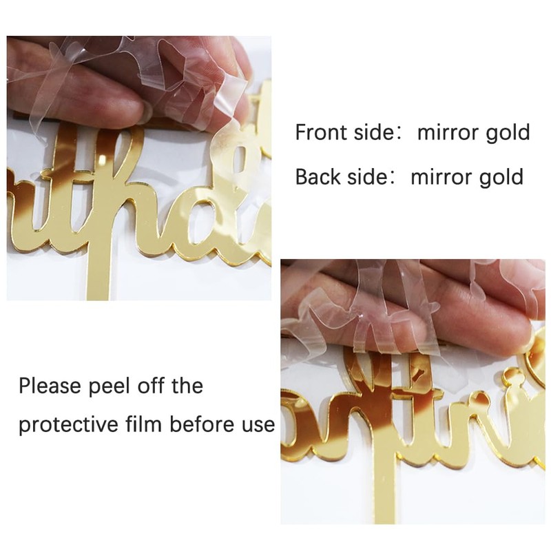 - Material de alta calidad: está hecho de acrílico dorado de doble cara, que es ligero y duradero, no se rompe ni se decolora fácilmente. Retira la película protectora en ambos lados cuando la uses para hacer que el producto brille en tu pastel