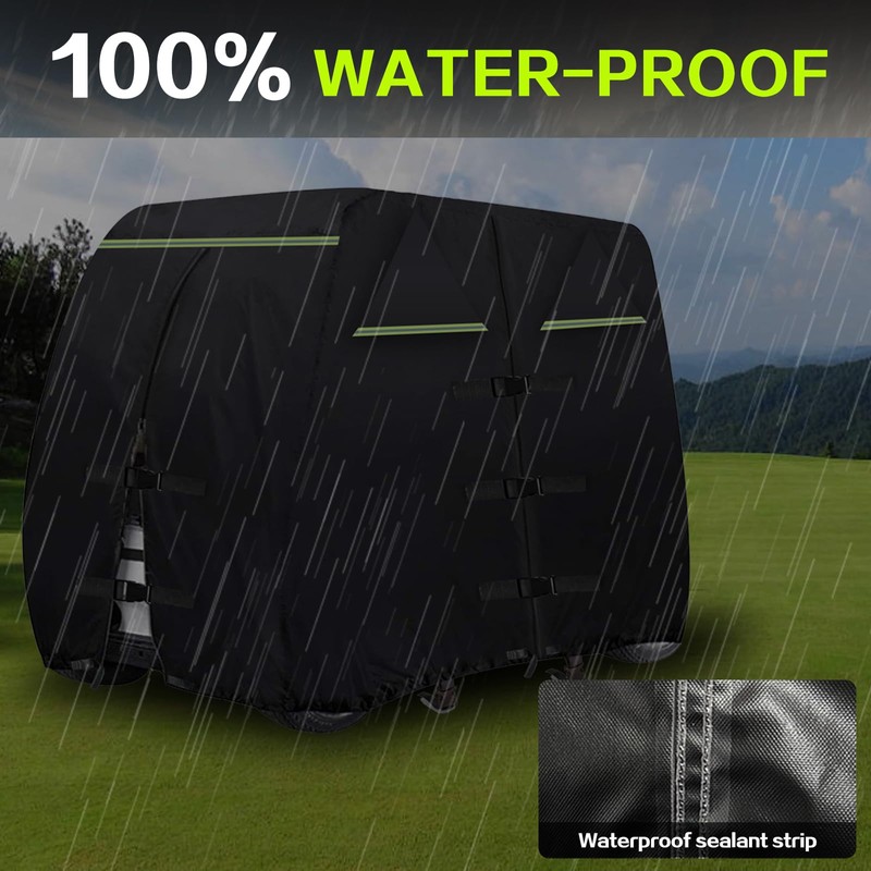 - Double-layer Waterproof Seams: Adopts double-layer seams and waterproof tape to keep your golf cart dry even in heavy rain. Reinforced seams provide extra durability and prevent water penetration.