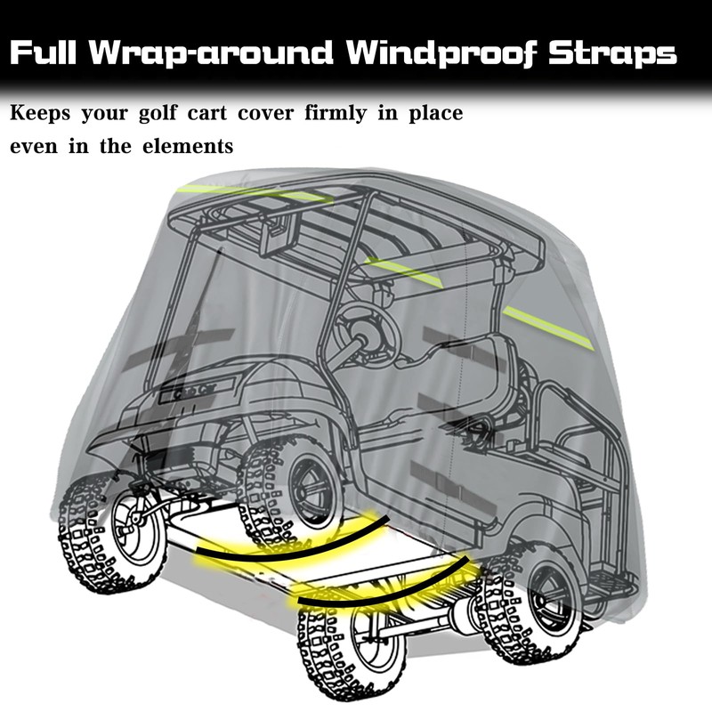 - All-Weather Protection: Constructed from durable 420D Oxford fabric with an additional PU coating to provide excellent protection against rain, heat, sun, snow, scratches, etc. Protect your golf cart from rain, sun and dirt, ensuring it stays in top condition for years to come.