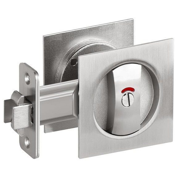 Qezodsx Sliding Door Lock with Indicator Light, Square Silver Privacy Pocket Latch, Barn Door Lock, Sliding Door Hardware