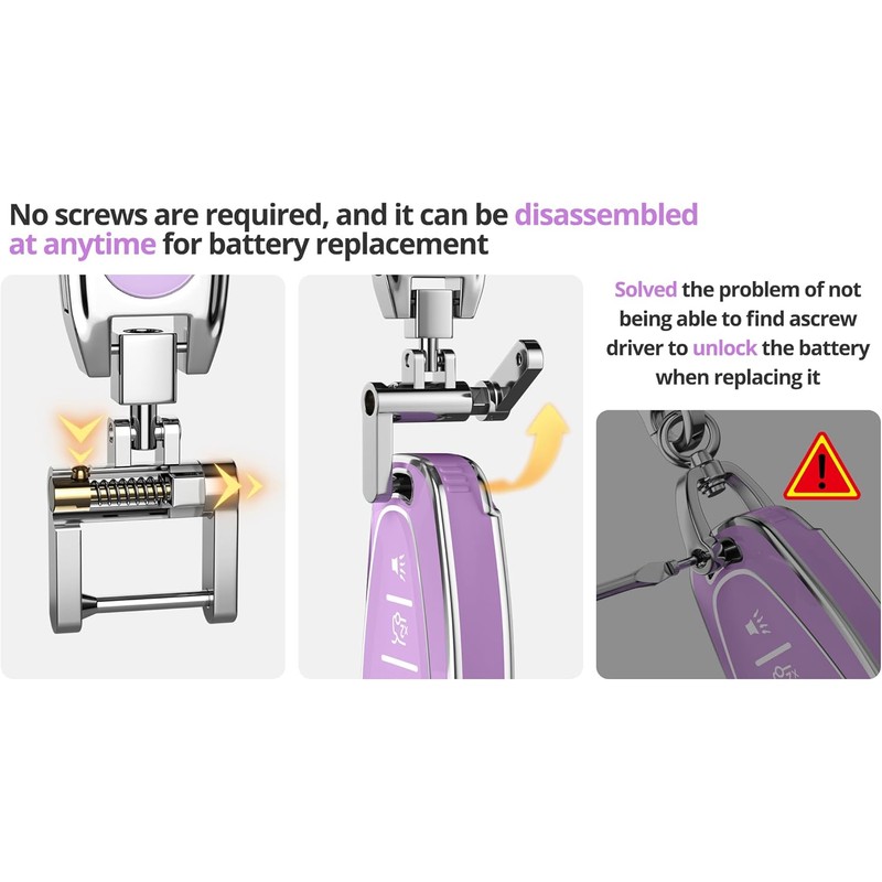Military-grade reliability: The keychain is made of strong zinc alloy, which can be unlocked and locked without screws, which is very convenient and safe. Compared with traditional key fobs, you no longer have to worry about not being able to remove the key when the key is out of power because you can't find a screwdriver. This is a perfect solution to this problem.