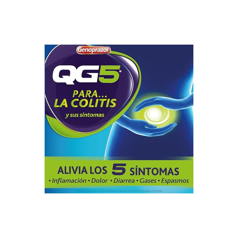 - ALIVIA LOS 5 SÍNTOMAS DE LA COLITIS: QG5 alivia la inflamación, el dolor en el bajo vientre, los espasmos, los gases y la distensión abdominal.
