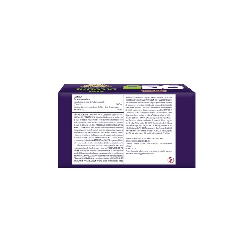 QG5 - Alivio para la Colitis. Ingredientes de origen 100% natural que alivian inflamación, dolor, diarrea, gases y espamos. Caja con 30 tabletas