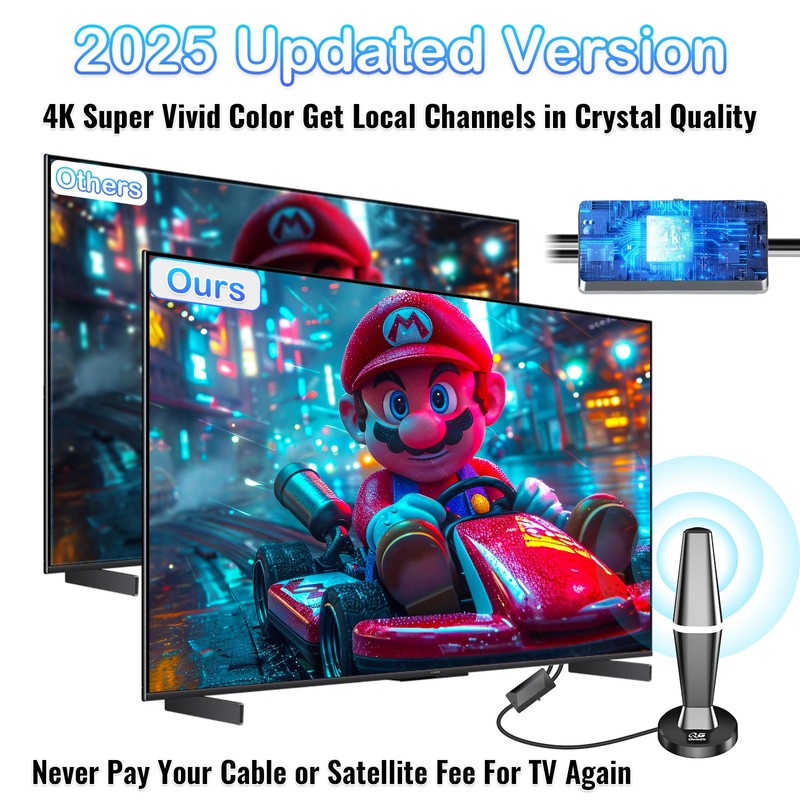 - 【Leading technology and design】 The freeview aerial is equipped with a professional grade signal boosting IC chip, the latest 2025 upgraded dual-mode amplifier signal booster, 4G/5G/LTE filtering technology, and even in weak signal areas, it can also stably output 1080P/4K ultra-high definition images, which can get the best picture quality, the most vivid colours and amazing sound, and its elegant and compact design allows you to carry it anywhere.