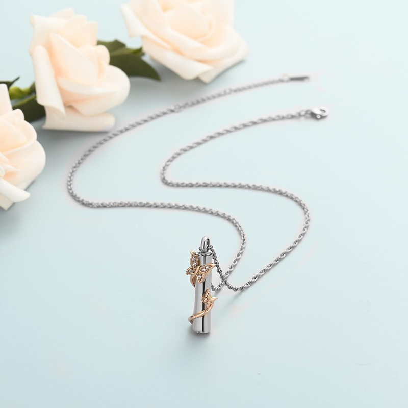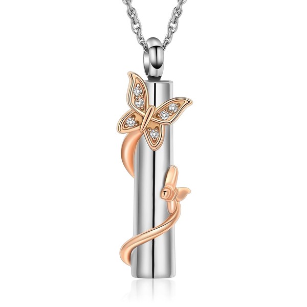 QGJNSGC Butterfly Ash Necklace for Women Men Cylinder Cremation Jewellery for Ashes for Loved Ones Memorial Ash Pendant, Stainless Steel