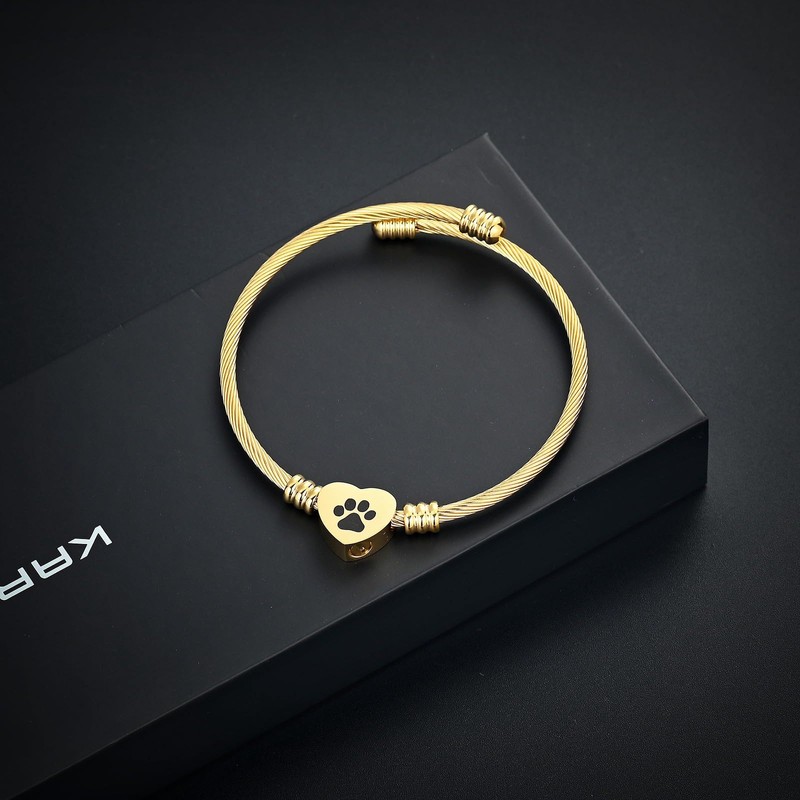 QGJNSGC Cremation Bracelet for Ashes Memorial Jewelry Stainless Steel Pet Paw Heart Shape Urn Pendant Bangle Loved Ones Funeral Ashes Holder Keepsake Gift