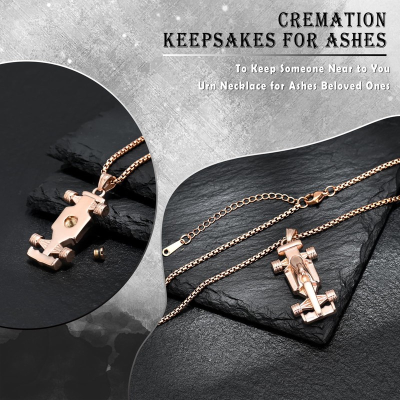 QGJNSGC Racing Car Urn Necklace for Ashes for Women Men Formula ONE Motor Racing Car Ash Pendant Car Cremation Jewelry Memorial Locket Pendant Keepsake Ashes Holder Jewellery Gift (Rose gold)
