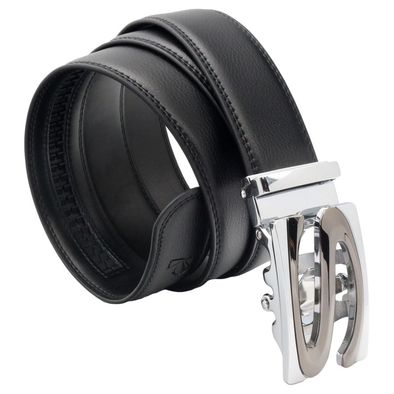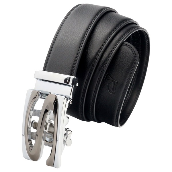 QHA Mens Automatic Leather S Belt Buckle Ratchet Waist EB26-Black-40-46"