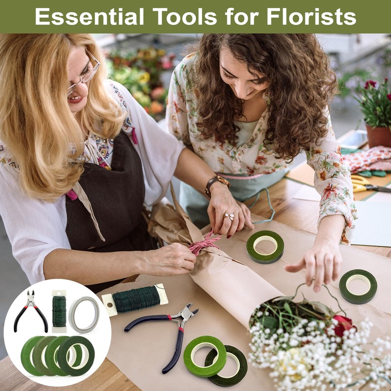 - Contents of the set: the flower arrangement tools include 4 rolls of flower ribbons in different colours, a roll of white double-sided tape, 0.7 mm flower wire and small tongs, providing a complete work tool for flower lovers and professional florists.