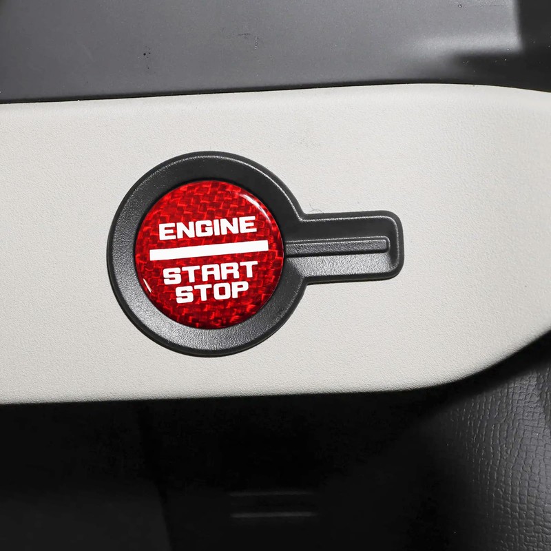 QianBao Compatible with Start Stop Button Cover Carbon Fiber Keyless Car Engine Ignition Switch for Ford Bronco 2021 2022 2023 2024 2025 Red