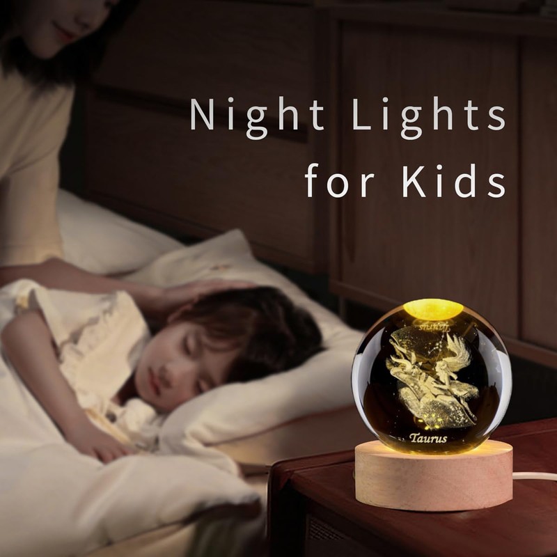 - Crystal ball lamp - Packed with LED wooden base and USB cable(power adaptor not included), the crystal ball lights up after power connected and the switch button on the cable for easily turn on or off. Suitable to use as a constellation night light and add peace and warmth to your bedroom or kids room