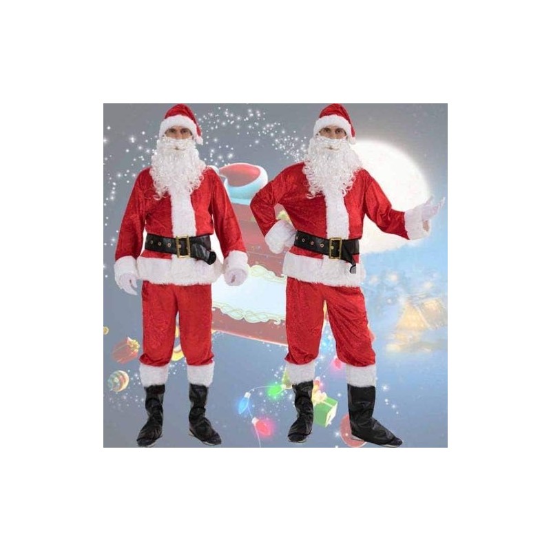 Christmas Santa Claus Cosplay Costume, Red Santa Zipper Coat+Pants+Hat+Belt+Beard+Shoes
