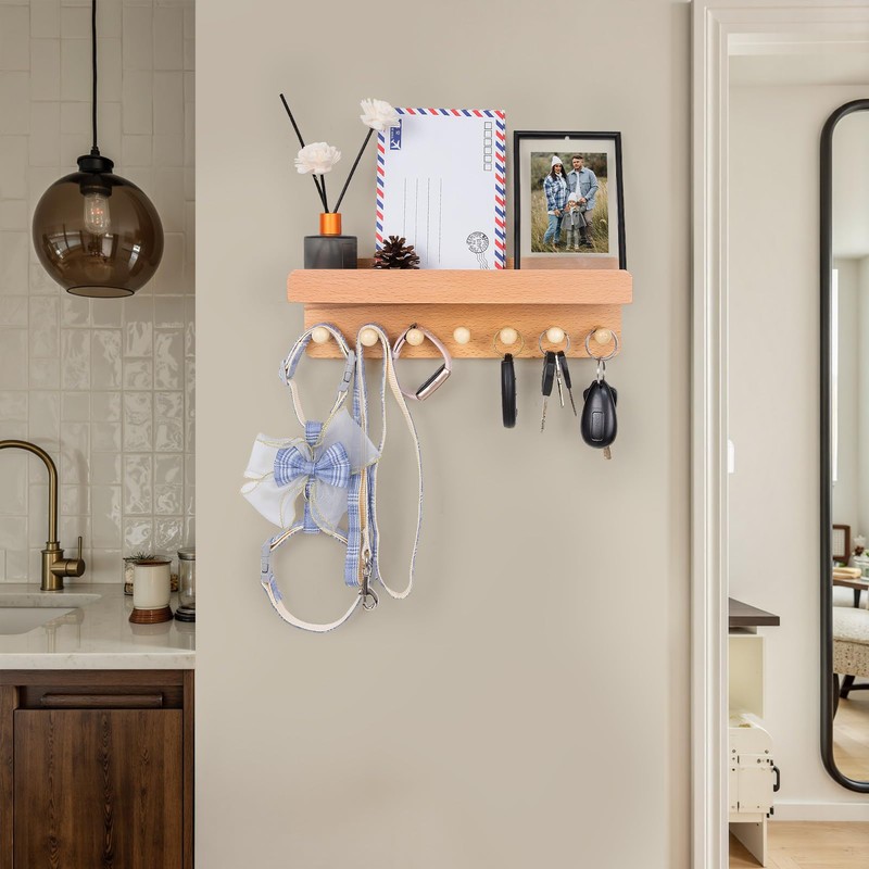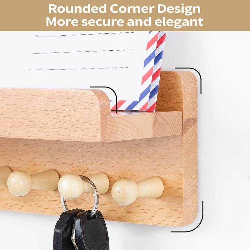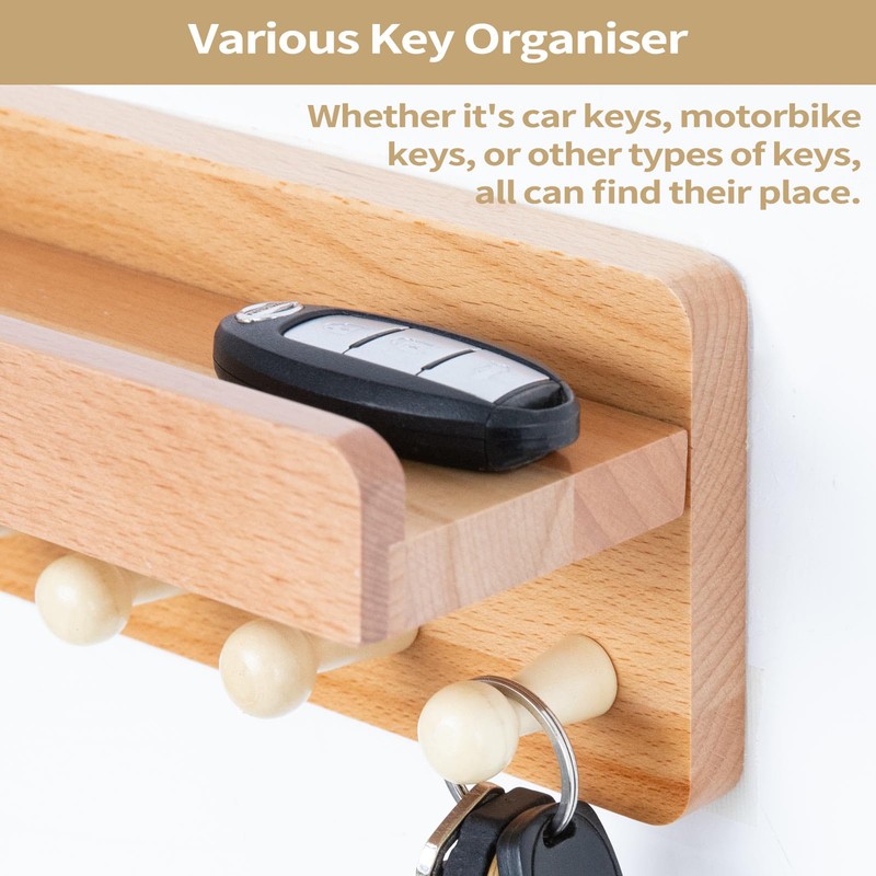 - Extended wooden board design, so you spend less time searching: The 31.5 cm long wooden key holder provides space for all your essentials (sunglasses, keys, umbrella, wallet, etc.), so you spend less time getting ready