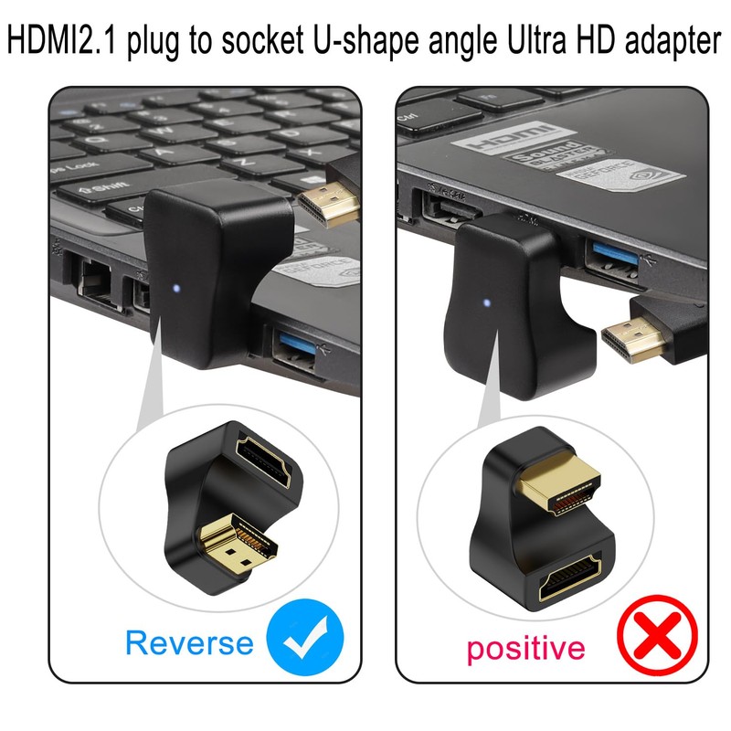 - 【Application】 HDMI 2.1 plug to socket U-shape angle Ultra HD adapter for UHDTV, HDTV monitors, game consoles, projectors, laptops, PCs, and other HDMI interface devices.