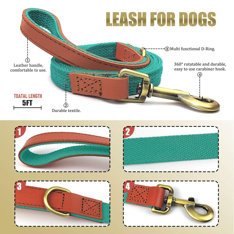 Qianruida Dog Collar and Leash Set Tactical Collar Leash Set Dog Leash and Collar Set Adjustable Dog Collar with Dog Leash Dog Collar for Small Medium Large Dogs- Cyan,L