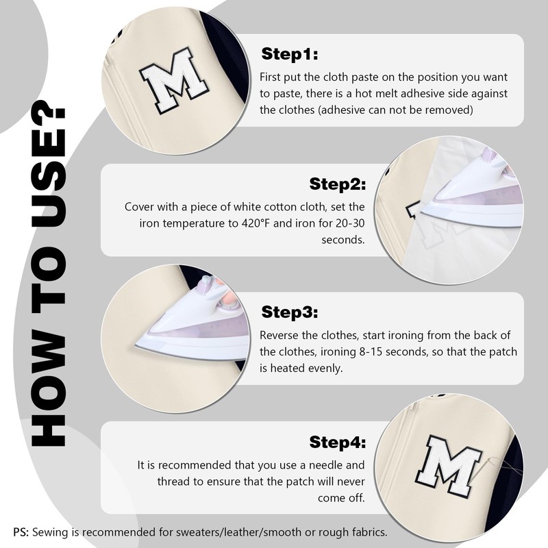 - Varsity Letter Patches: Can be quickly applied with an iron or securely stitched on, offering versatile and convenient use