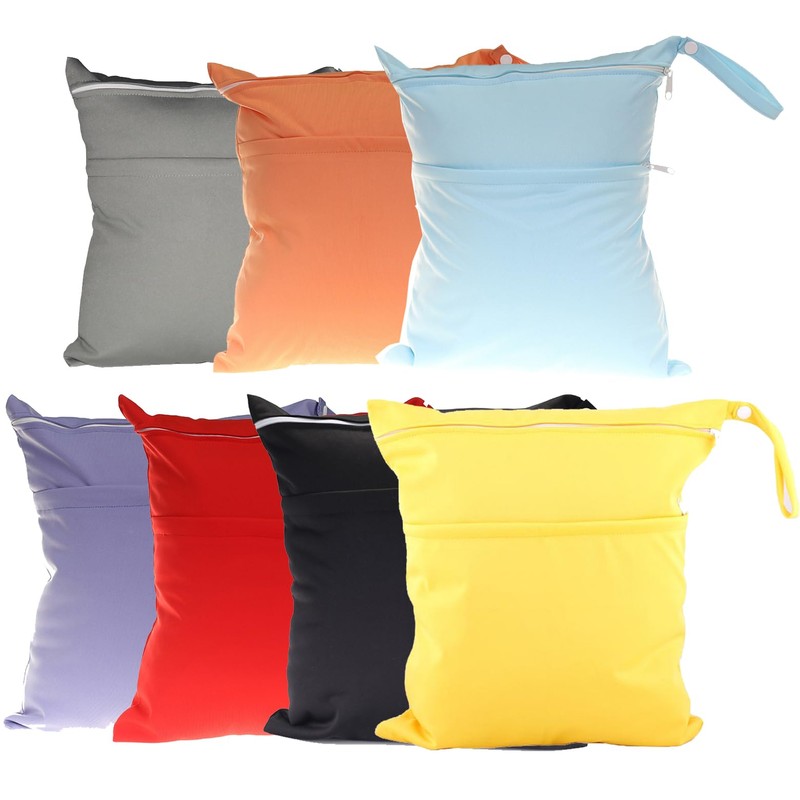 - Colour: grey, orange, blue, purple, red, black, yellow. Pack of 7 waterproof cloth nappies, wet bags, large changing bag, wet bag, wet bags, reusable, with 2 zip for baby travel on the go.