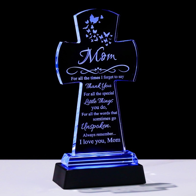 Qianwei Gifts for Mom from Daughter Son - Crystal Cross Christian Gifts for Mom with Led Colourful Light Base - Christmas Valentines Mothers Birthday Day Gifts Her Mama