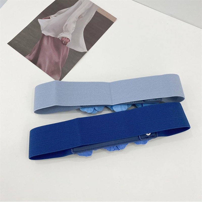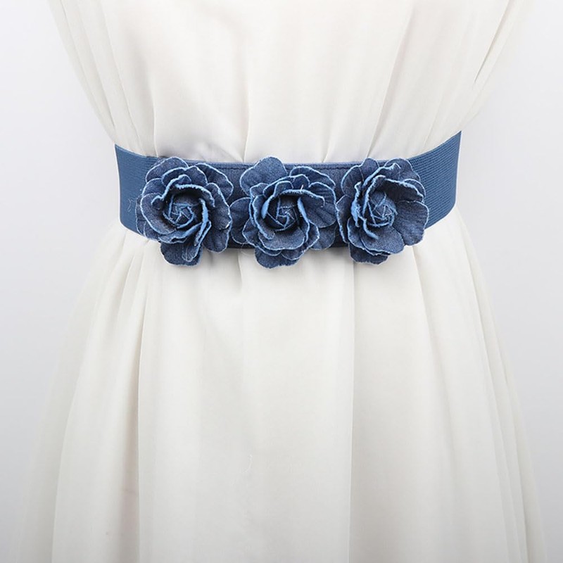 QIANXISUN - Cinturones elásticos para mujer, diseño de flores rosas para vestido elástico, cinturón de cincha, Azul oscuro, Talla única