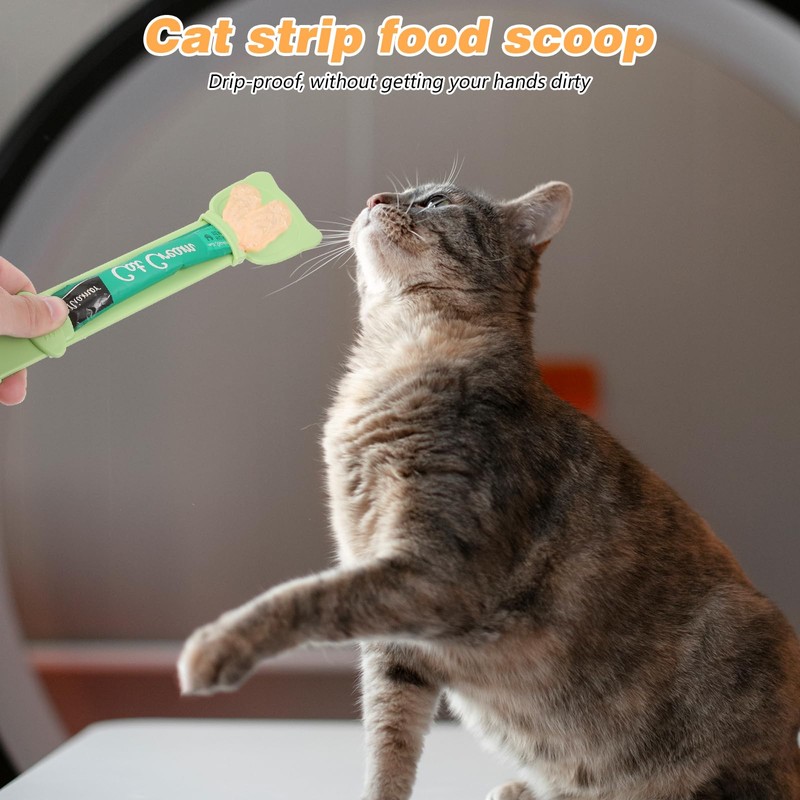 • 【Easy to Use】This cat spoon for wet food is designed with an ergonomic handle that provides a comfortable grip for precise control. Simply open the cat food scoop, insert the cat strips, tear the seal, close the cat food feeder, and push the sliding clip with your thumb to easily dispense snack.