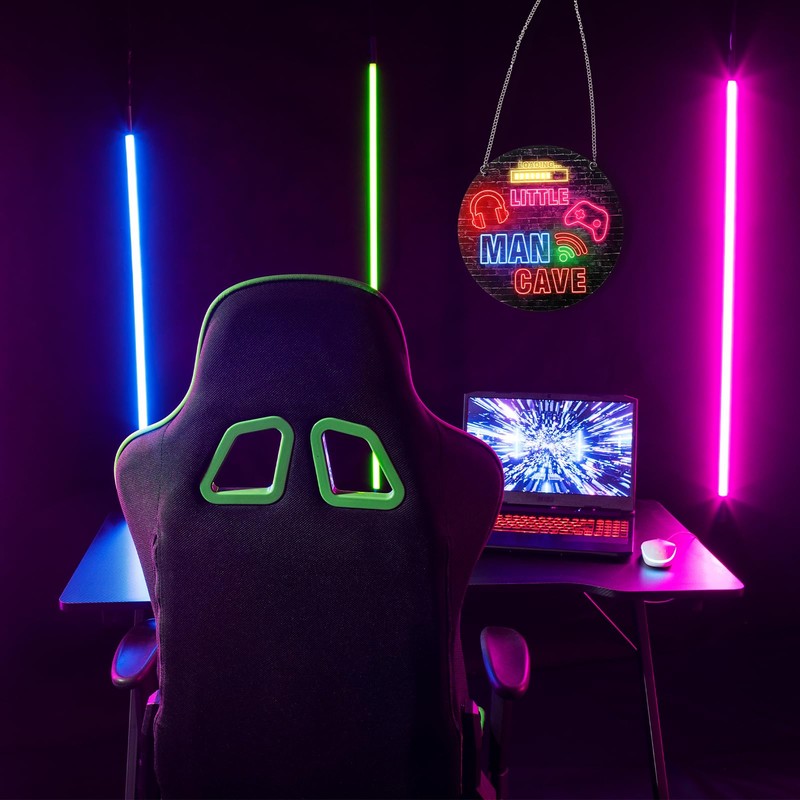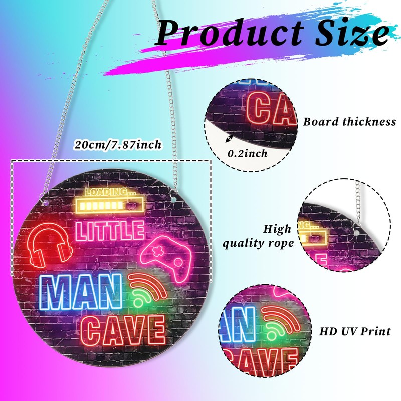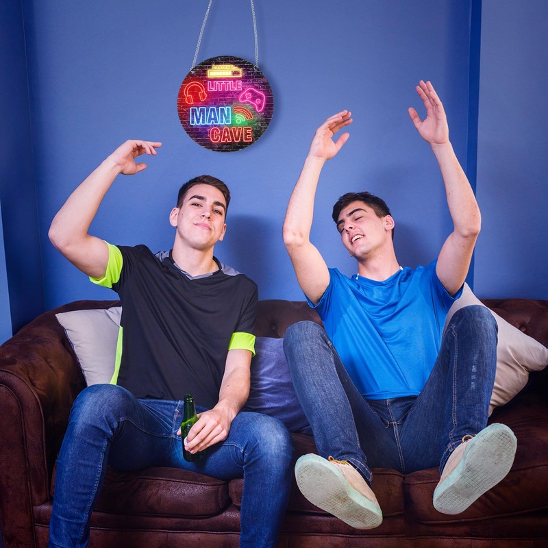 - 【High-quality Materials】Neon little man cave sign is made of high-quality acrylic material. The gaming wooden door sign is light but beautiful in appearance. Hanging wall art decor has a very clear polished surface. Room decor for men can be use continuously without wear and tear, and gaming wall decor allows you to use it for a long time.