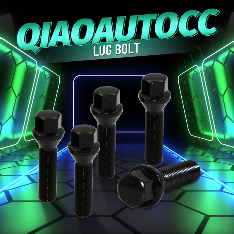 QIAOAUTOCC M14x1.5 Black Wheel Lug Bolts – 45mm Thread Length, 17mm Hex, 60° ...