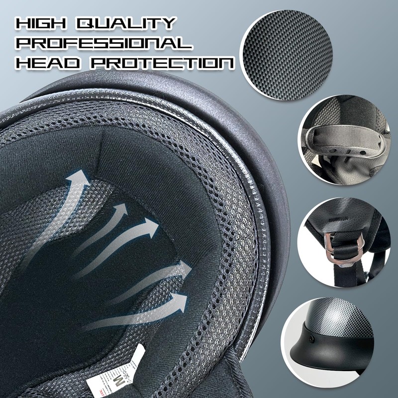 QICHAO Half Motorcycle Helmets - Retro Style Half Helmet Classic Design Motorcycle Helmet for Urban Rides DOT Approved-Carbon Fiber,M