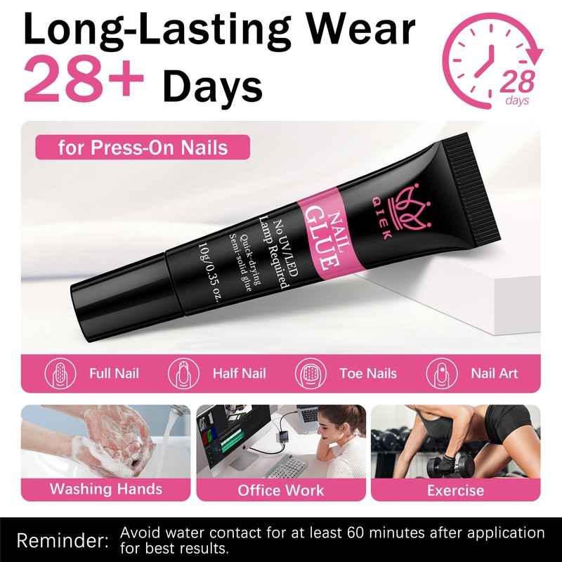 - 10-Second Quick Dry: Enjoy salon-quality nails in seconds! QIEK press on nail glue dries in just 10 seconds—no U V lamp required, no U V damage. Perfect for nail art beginners at-home or on-the-go manicures.