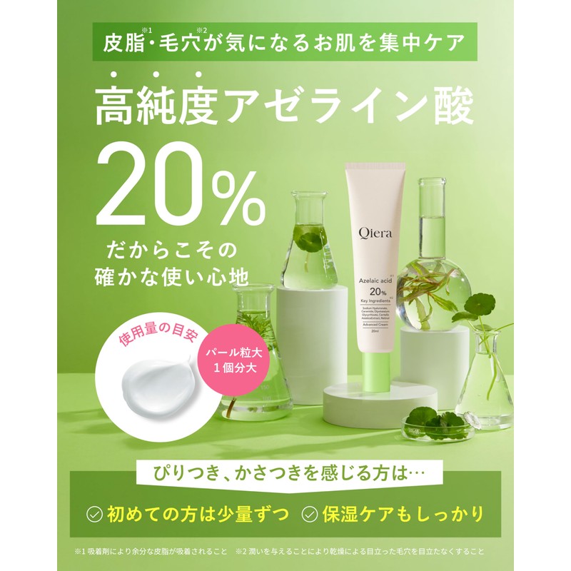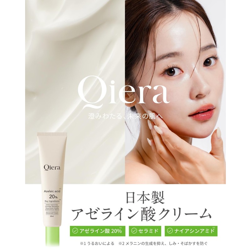 Qiera Azelenic Acid 20% Cream, 0.7 oz (20 g), Ceramide, Niacinamide, CICA Deer, Hyaluronic Acid, Pore Care, Sebum Moisturizing, Sensitive Skin