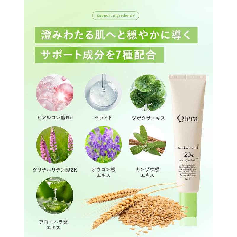 Qiera Azelenic Acid 20% Cream, 0.7 oz (20 g), Ceramide, Niacinamide, CICA Dee...