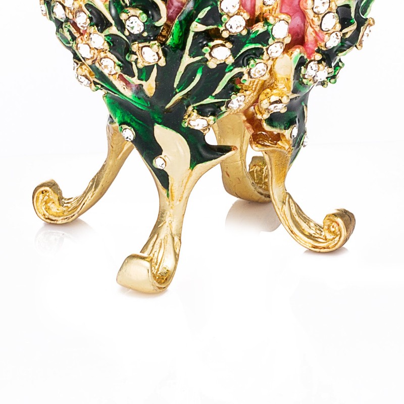 QIFU Vintage Hand Painted Small Cute Easter Egg Style Hinged Jewelry Trinket Box with Rich Enamel and Sparkling Rhinestones