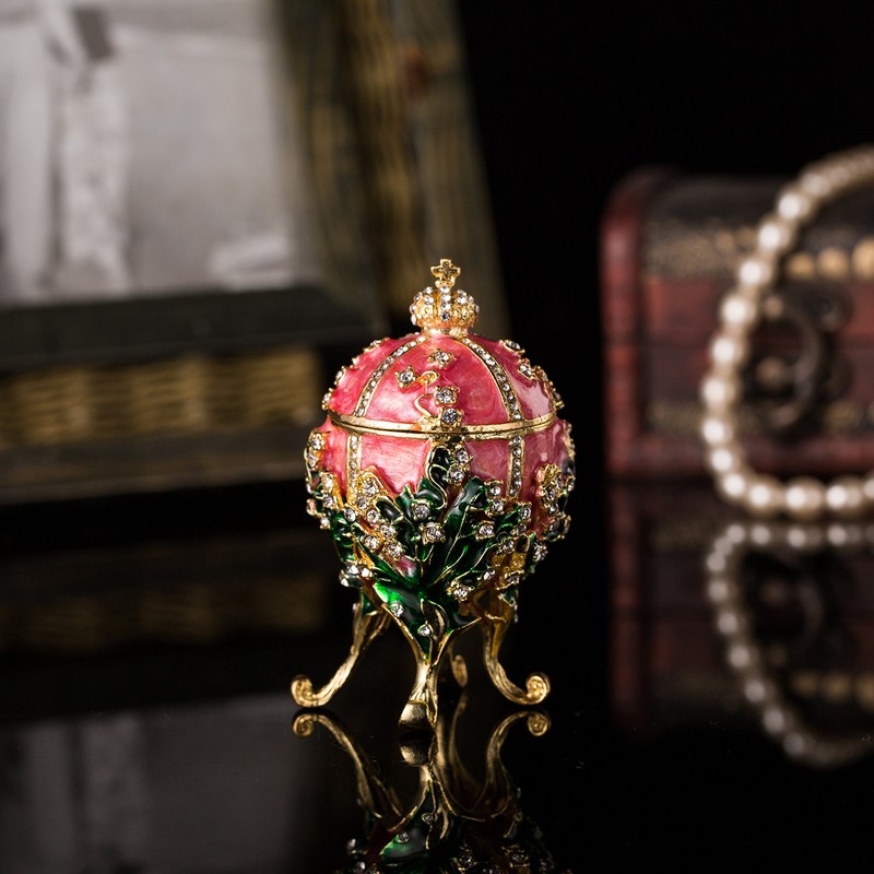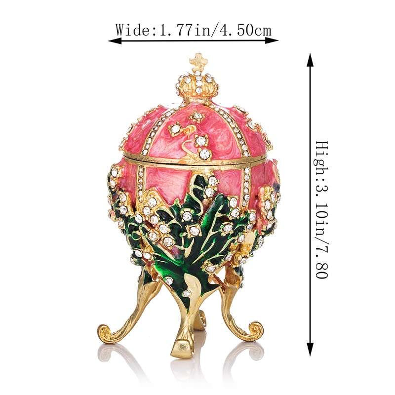 QIFU Vintage Hand Painted Small Cute Easter Egg Style Hinged Jewelry Trinket Box with Rich Enamel and Sparkling Rhinestones