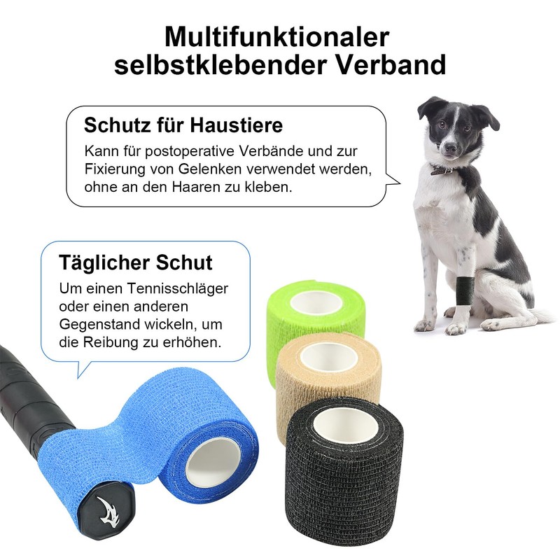 - 【Multifunktionsbandage】Die selbstklebende Bandage ist multifunktional, verwendbar für verbandskasten, für die häusliche Pflege der Familie, für den persönlichen Gebrauch, als Verband für Tiere und zum Schutz beim Sport; Auch für Haustiere wie Pferde, Hunde, Katzen usw.