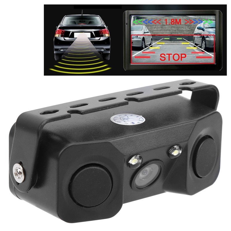 Qiilu Kit de cámara de visión Trasera de Coche, Kit de cámara de visión Trasera de Coche Sensor de Radar de estacionamiento de Alta definición Luz LED Visión Nocturna