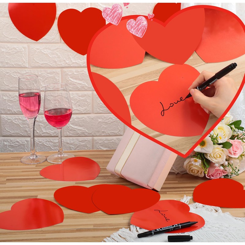 - Valentine's Day Heart Cutouts Set: you will get 100 pieces of heart cutouts in 3 red and 2 pieces of the pen, dreamy and cute, sufficient quantity for you to make DIY crafts or projects, they also can be applied for decorating Valentine's Day parties, etc., and creating more fun