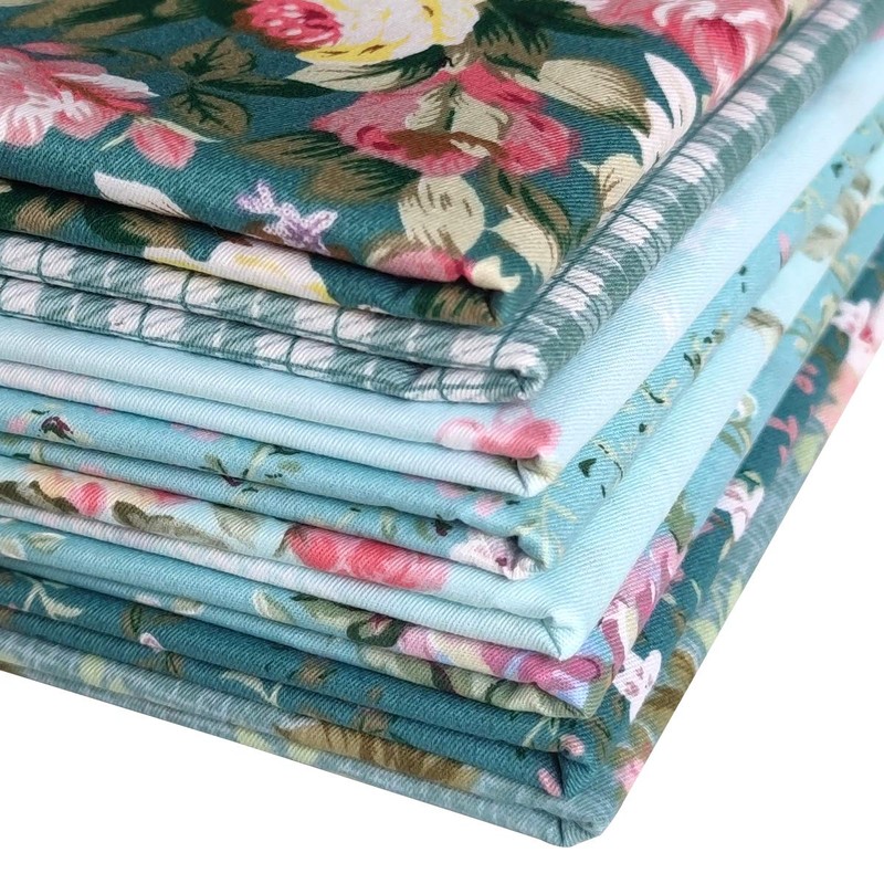 Qililandiy 8pcs Cotton Fabric 100% Cotton with Green Rose Grid Different Patterns Patchwork DIY Fabric 46x56cm Cut for Sewing Crafts Deco