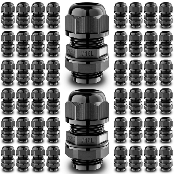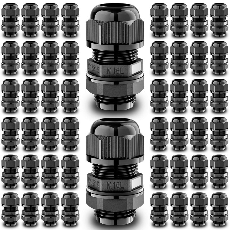 QILIPSU 50pcs M16L Long Thread Cable Gland Waterproof IP68 Nylon Strain Relief Cord Grip Cable Pass Through Wire Connector
