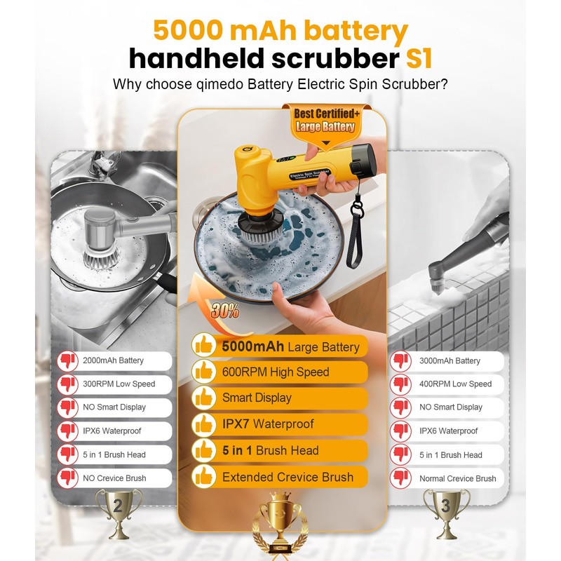- 【𝐄𝐱𝐜𝐞𝐥𝐥𝐞𝐧𝐭 𝐆𝐢𝐟𝐭 𝐚𝐧𝐝 𝐒𝐞𝐫𝐯𝐢𝐜𝐞】The 5000 mAh battery handheld scrubber is beautifully packaged and makes a perfect gift for your friends and family, who will be sure to rave about your choice! 24 hour full time after-sales service + 2 years war*ranty. Quality, integrity, and first-class customer service are how we got so many regular customers, If there are any problems with the product, order, or logistics, please contact our team for help in the first instance!