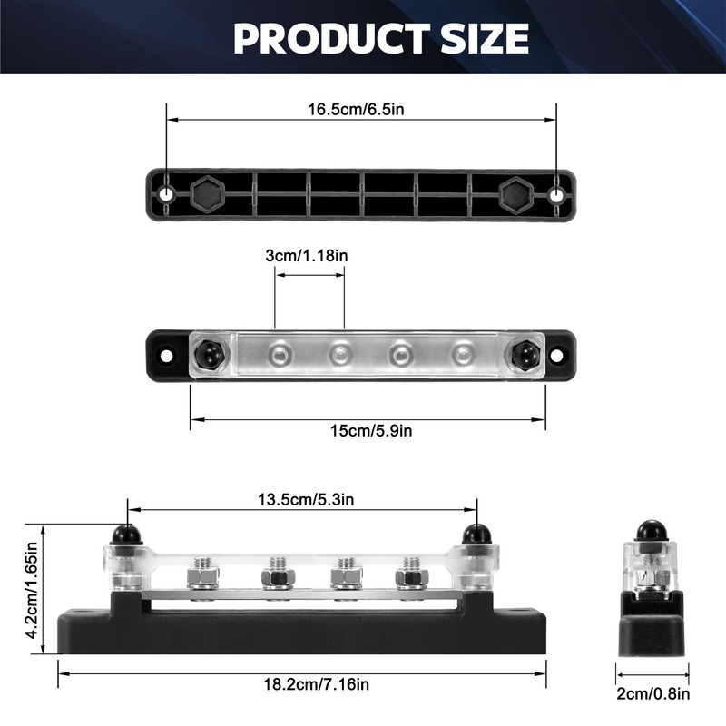 - Wide application: power distribution block is widely used for 12-48V cars, motorhomes, trucks, yachts, boats, trailers, solar panels and other industrial equipment. Busbars provide you with a clear power distribution system that is perfect for your electrical wiring projects.