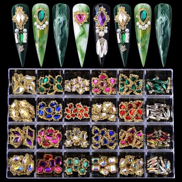 Juego de abalorios para uñas de lujo 2021: este kit de abalorios para uñas de diamantes 3D está disponible en 24 estilos diferentes, que añaden brillo y glamour a tus manualidades, hace que tus uñas sean más deslumbrantes y encantadoras. Se trata de un elegante y lujoso juego de cristales y abalorios para uñas.; Calidad premiumLos abalorios de diamantes de imitación para uñas están compuestos de una base de metal de alta calidad K9 y de aleación de metal, decorados por cristal con hermosas facetas de corte, ligeros, duraderos, brillo y brillo duraderos.; Fácil de usar: los accesorios de uñas 3D son fáciles de aplicar en uñas naturales o artificiales. Hacer tu propio estilo de arte de uñas, te ayudará a ganar más admiración en la fiesta.; Amplias aplicacionesDiseño de moda de diamantes de imitación para uñas DIY. Funciona muy bien para decorar uñas, manualidades, ropa, zapatos, etc. Es un colgante de metal muy personal y de moda para manualidades.; Contenido del paquete: 240 piezas de decoración de uñas de cristal de metal de lujo, 24 tipos de formas, 10 unidades de cada forma; 1 caja de almacenamiento exquisita. Todos los productos están bien embalados. Especificación