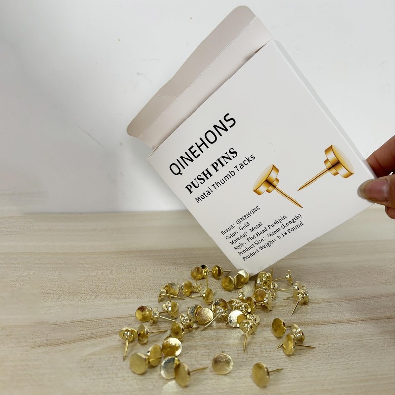 - Sufficient Quantity & Convenient Storage: The package contains 50 pieces of QINEHONS Metal Gold Push Pins, each with a bright gold color and smooth surface. They come in an individual transparent plastic box, promoting easy access and keeping your desk or drawer organized. Enough to satisfy your daily use or replacement demands.