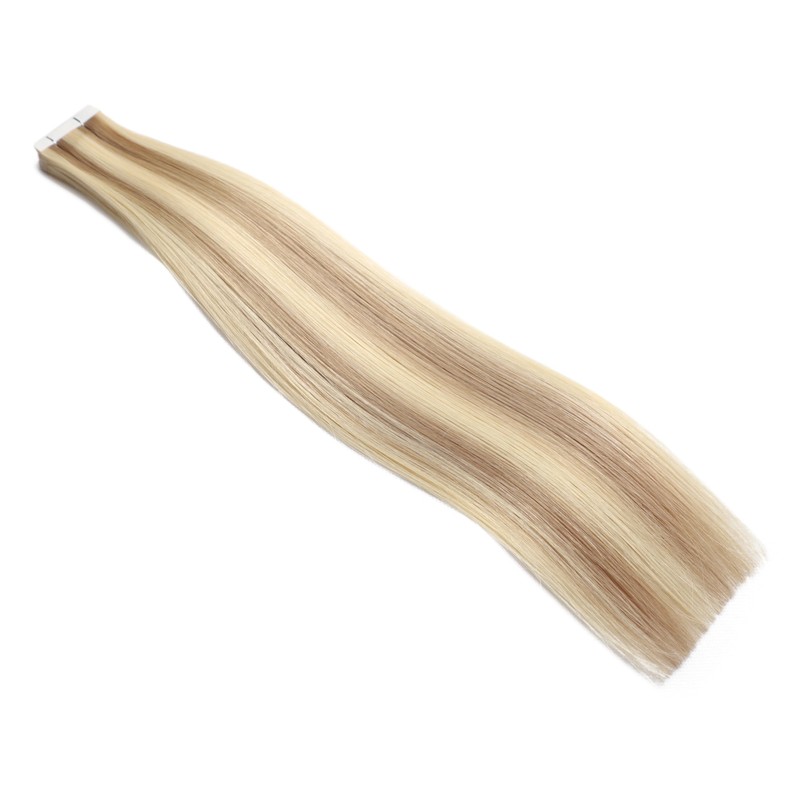 QingChang Tape in Hair Extensions Human Hair Single Donor Hair Healthy Natural Invisible Seamless Longlasting #P18/613 Highlight Bleach Blonde 16" 20pcs 50g