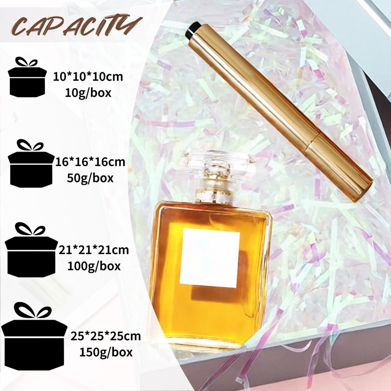 - For Any Occasion: Our perfect gift boxes glitter shredded tissue paper fit any occasion. Whether it's for Christmas, birthdays, a wedding, Easter, Mother's Day or an anniversary, these raffia paper shred will complement your gift packages and decorations.