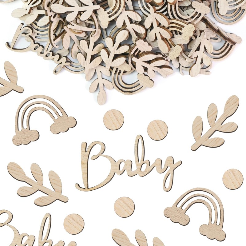 - What you get: you will receive 100 pieces of baby shower decoration confetti wood, several fun patterns, instantly create a cosy and cheerful party atmosphere, napkins baby shower confetti is a great decoration element for parties