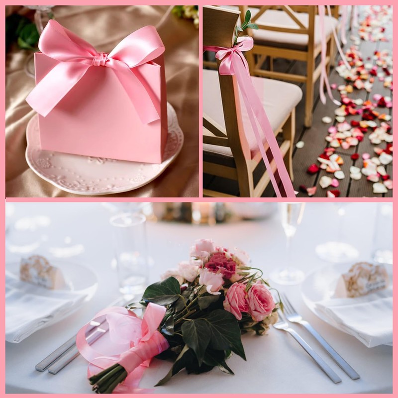 - Shade of ribbon pink is ideal for weddings and all party decorations. For wedding chair decoration, dress sash, garland, bouquet, wedding invitation card, dusty blue party gift, bridal shower gift packaging, gift box packaging, flower crown, home decor, garment and sewing, baking, wedding cake decoration, hanging bunting, hair accessories, wedding ribbon magic wand, crafts, etc.
