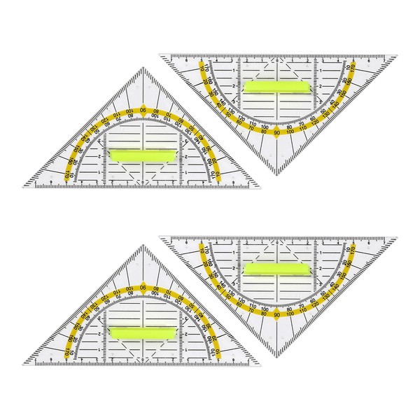 qingmeng Set Square with Handle, Set of 4 Small Flexible Set Square Plastic 14 cm Ruler Geo Triangle School 2 Functions Geometry Triangle for Students Technical Drawing